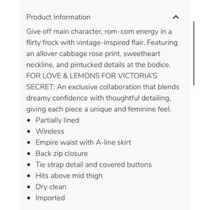 For Love & Lemons For Victorias Secret Floral Empire Waist Dress M $254 MSRP NWT