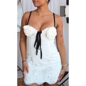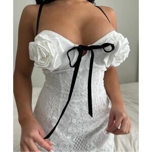 For Love & Lemons Franca Rosette Bust Strappy Back White Lace Mini Dress Sz S