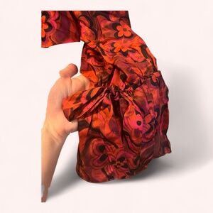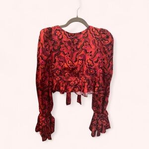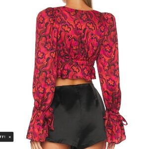 For Love & Lemons Funky Floral Red Flare Davina Tie Front Blouse NWOT Size S