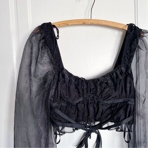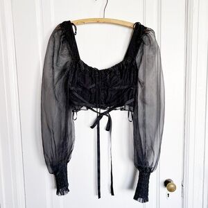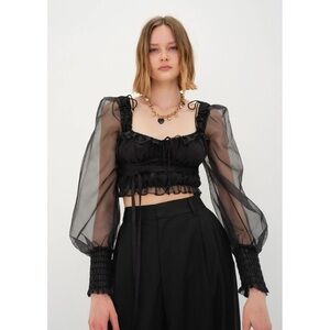 For Love & Lemons • Gabrielle Top peasant ruffle puff sleeve black sheer blouse