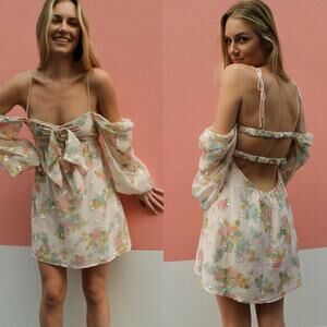 For Love & Lemons Revolve Georgina Embellished Floral Babydoll Mini Dress Medium