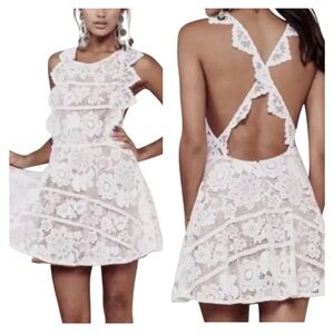 Keywords: for love and lemons dress, white lace mini, bridal shower dress, open back dress, summer party dress