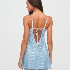 A Highly Coveted FL&L style, the bestselling Glitter blue slip dress enchants all year round. Coated in rhinestone embellishments, this embellished mini dress spotlights keyhole cutout accents.