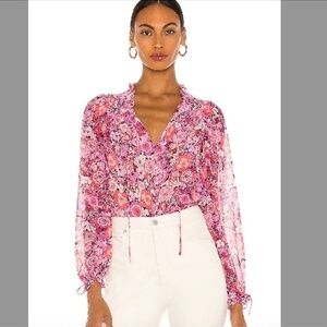 For Love & Lemons Grace Blouse Carnation Floral Small Pink