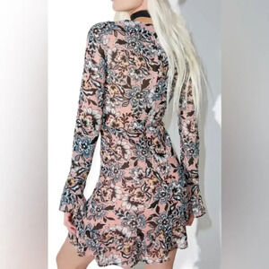 For Love & Lemons Gracie Floral Mini Dress Pink Size Small