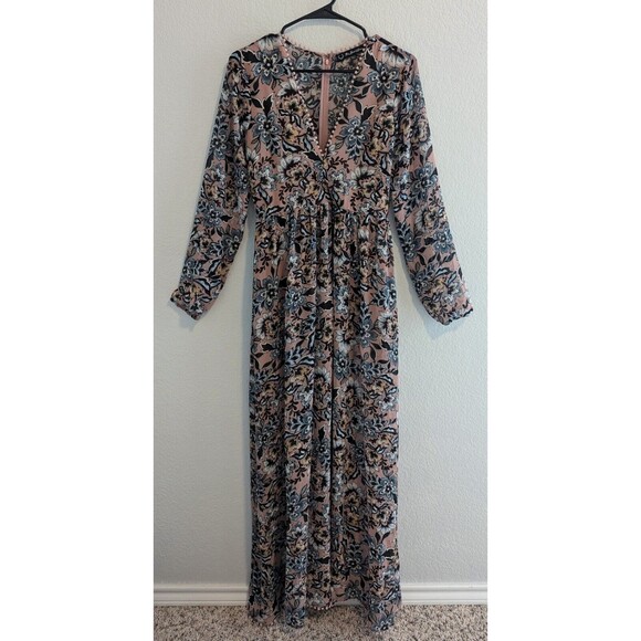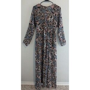 For Love & Lemons Gracie Maxi Dress Women's Size Medium Nude Floral Lined Dress