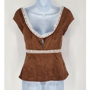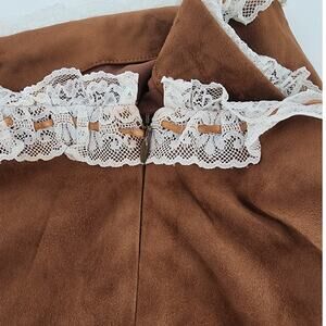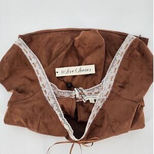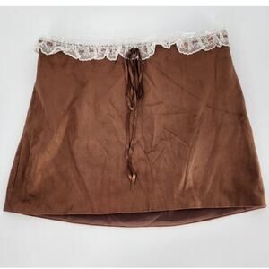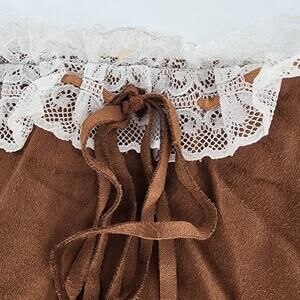 This For Love & Lemons Hadley Prairie Set blends romantic charm and Western-inspired flair. Made from rich faux suede with delicate lace trim, it features a corset-style top and matching mini skirt. Perfect for festivals, themed events, or standout fashion moments.