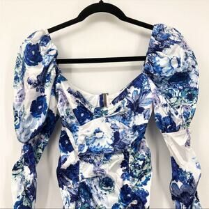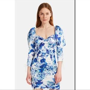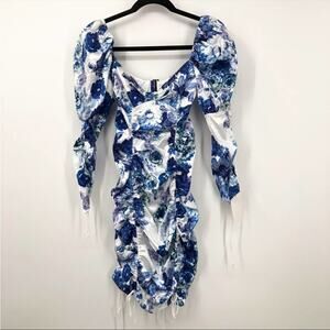 For Love & Lemons Hyacinth Printed Ruched Mini Dress XS Navy Floral NEW