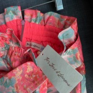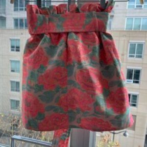 $218 For love & lemons xs jackpot skirt mini metallic jacquard floral belted paperbag waist