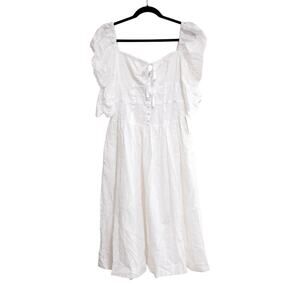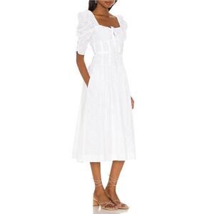 For Love & Lemons Jean Eyelet Midi Dress White Corset Puff Sleeves SZ L NWT