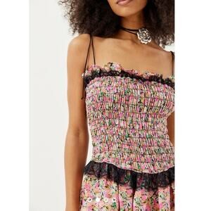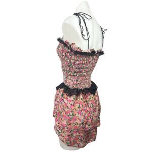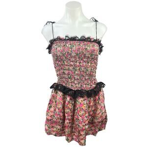 For Love & Lemons Juanita Multi Smocked Floral Sleeveless Mini Fit Flare Dress S