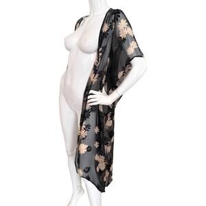 For Love & Lemons Kimono Jacket Silk Floral Burnout Open Boho Vintage Sheer