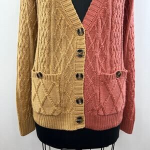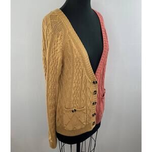 For Love & Lemons Knit Colorblock Blush Pink Tan V Neck Cardigan Pocket S Small