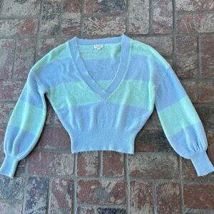 For Love & Lemons Knitwear Mint & Blue Size S Long Balloon Sleeve V-Neck