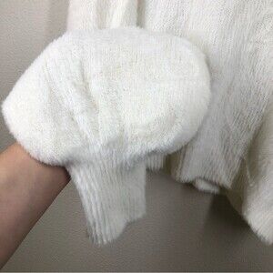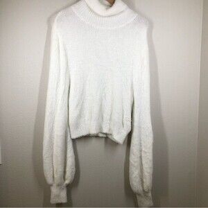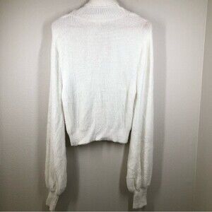 For Love & Lemons Knitz Myriam Turtleneck Faux Mohair Sweater, White, Oversized balloon sleeves, A few small pulls have been stitched up otherwise in good preowned condition. No stains. Price reflects these flaws. Size Small