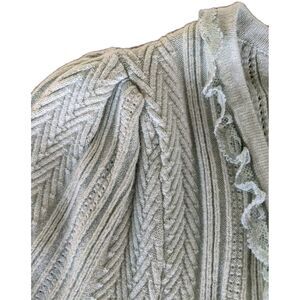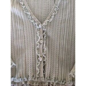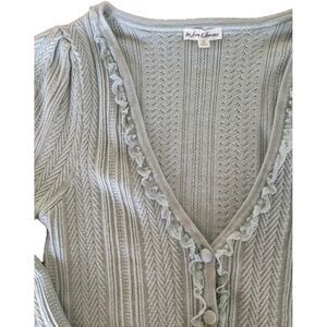 For Love & Lemons Lace Trimmed Cardigan Women's Sz XL Ribbed V-neck Fitted Mint