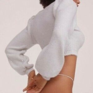For Love & Lemons Large Odette Glitter Mohair Knit Cardigan Ivory White