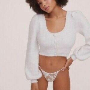 This listing is for the Cardigan Sweater ONLY, the bra, panties and accessories shown in some photos is NOT included.