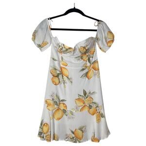 For Love & Lemons Lemonade Off Shoulder Mini Dress White Yellow Size Small