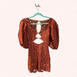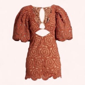 For Love & Lemons Letitia Puff Sleeve Floral Plunge Cutout Mini Dress NWT Size M