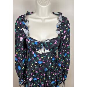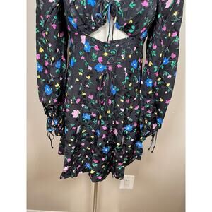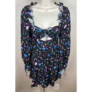 For Love & Lemons Lexy Floral Long Sleeve Cutout Ruffle Mini Dress Size XS