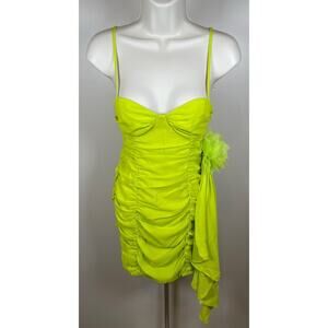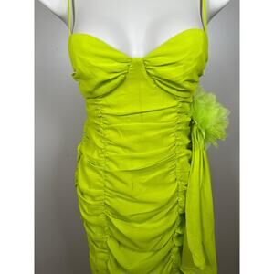 For Love & Lemons Lorlai Ruched Rosette Train Green Mini Dress Size XS