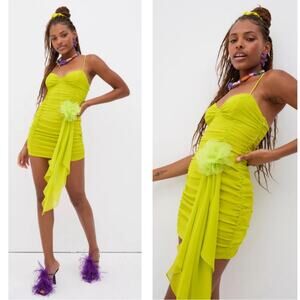 For Love & Lemons Lorlai Ruched Rosette Train Green Mini Dress Size XS is brand new with tags! Featuring: