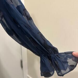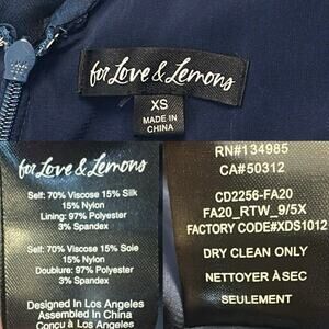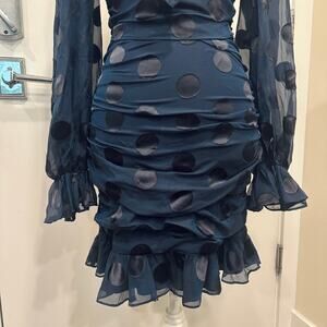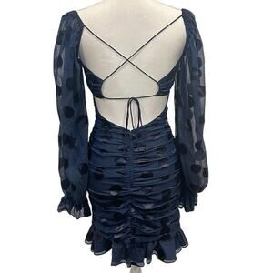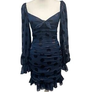 For Love & Lemons Lula Mini Dress Navy Polka Dot Ruched Chiffon Silk Party XS