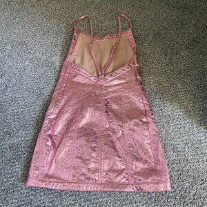 For Love & Lemons Luna Metallic Pink Retro 90s Low Back Mini Dress Size XS