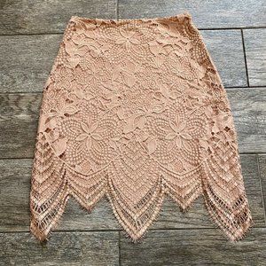 For Love & Lemons Luna Pale Pink Floral Lace Scalloped Hem Mini Skirt Sz S