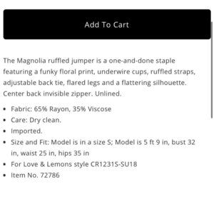 For Love & Lemons Magnolia Ruffle jumsuit, Midnight bloom, Size M O28