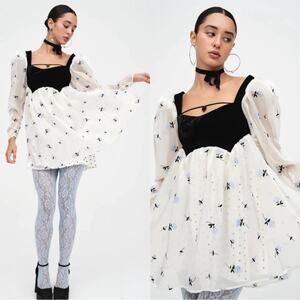 For Love & Lemons Marcella Floral Long Sleeve Sheer Puff Sleeve Mini Dress Sz S