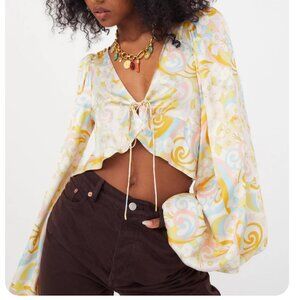 For Love & Lemons Marcia Crop Top Yellow Stars Astology Floral Boho S