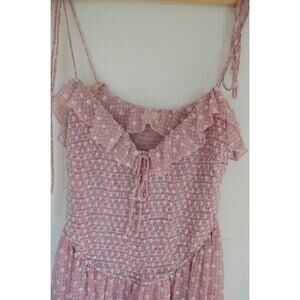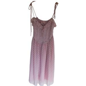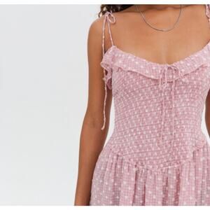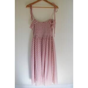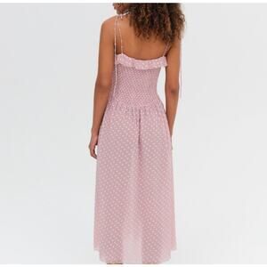 Inspired by vintage tablecloths, the Maxine pink midi dress has a timeless appeal. Crafted in a gingham dot fabric, it's cut to a demure silhouette with a smocked stretch bodice and gathered skirt—making it the perfect sundress for romantic minimalists.