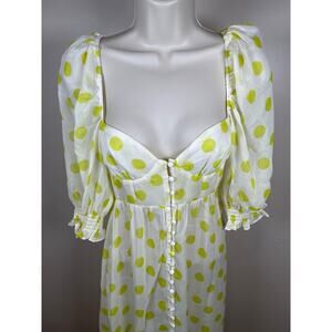 For Love & Lemons Megan Polkadot Sheer Chiffon Puff Sleeve Maxi Dress Size XXS