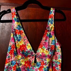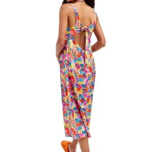 For Love & Lemons Merrill Midi Dress Cutout Tie-Back Bright Floral Size Medium