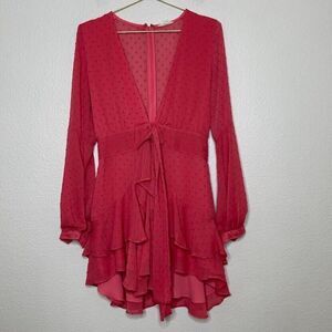 For Love & Lemons Mini Dress Size Medium Swiss Dot Flowy Ruffled Tropical Summer