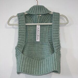 For Love & Lemons Mint Dominique Cropped Backless Sweater Tank Size XL