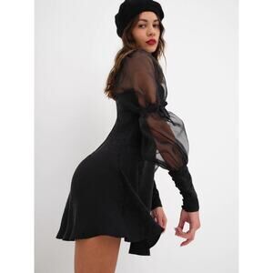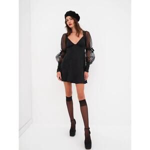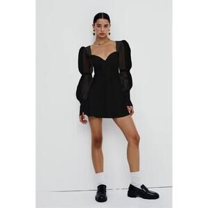 For Love & Lemons- NWT-Gabrielle Puff Sleeve Mini Dress Black Sz:XS Ret$221