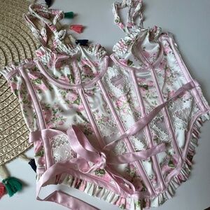 For Love & Lemons Naima Bustier White Floral Small NEW