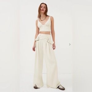 For Love & Lemons “Natasha” Wide Leg Belted Pant In Cream
