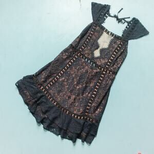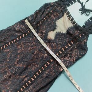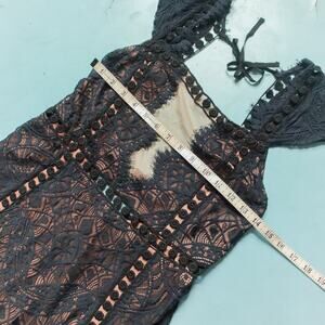 For Love & Lemons Navy Black Lace Front Fitted Dropback Mini Dress Size Large