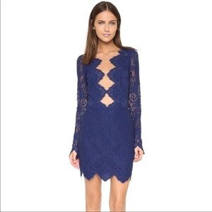 For Love & Lemons Noir Lace Long Sleeve Dress New