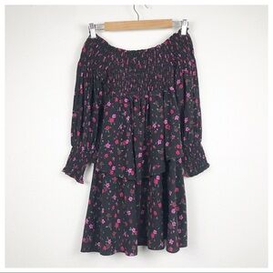 For Love & Lemons Off the Shoulder Black Floral Tiered Dress Size Small