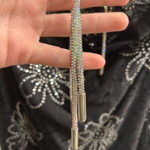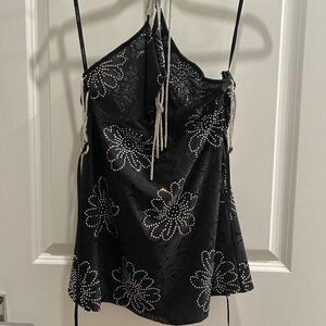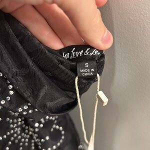 FOR LOVE & LEMONS black floral crystal embellished PAMELA mini dress. Size small - with original tags attached, never worn. Asymmetrical cowl necklines, featuring rhinestone straps. New with tags.