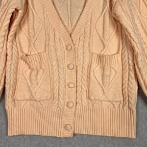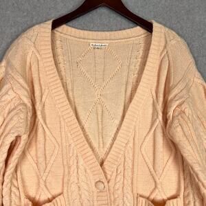 For Love & Lemons Peach Cable Knit Balloon Sleeves Oversized Cardigan Size Small
