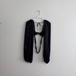 NWT, ties in front are functional, clips and ties in the back, in the black satin color!