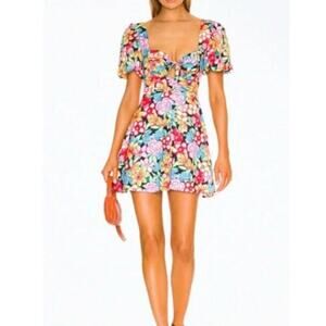 FOR LOVE & LEMONS MALLORY FLORAL-PRINT CUTOUT SATIN MINI DRESS
