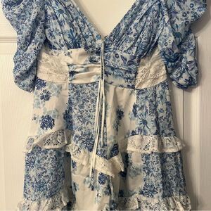 For Love & Lemons Rosalyn Mini Dress in Blue
