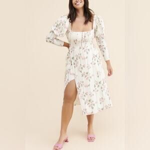 Embrace elegance with this floral puff sleeve dress. Perfect for any occasion, this dress features a beautiful floral pattern on a cream background.